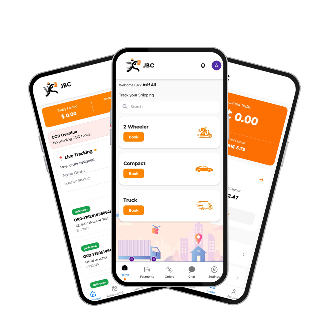 JBC Express is an all-in-one delivery and logistics platform offering fast pickups, reliable transportation, and real-time tracking. From documents to heavy shipments, users can book instantly, track every move live, and enjoy secure digital payments with ease.